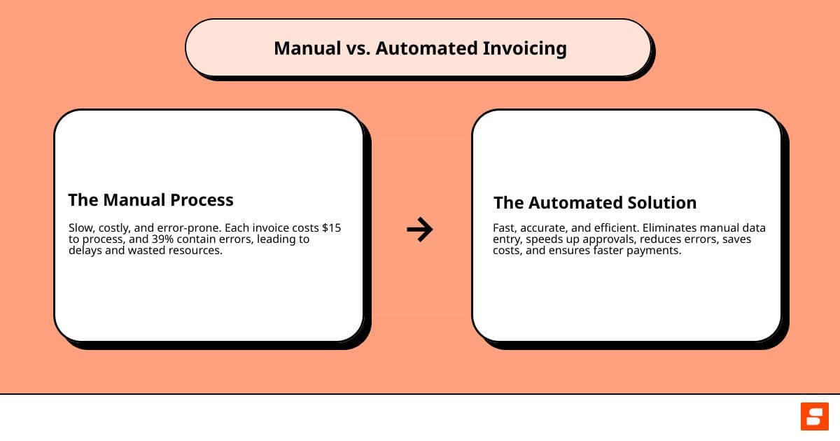 Using spreadsheets or paper files for invoicing is slow, inefficient, and full of hidden costs. A major pain point is late payments—an astonishing 61% of late payments in the US happen because of invoicing errors . This ties up your cash flow due to preventable mistakes.