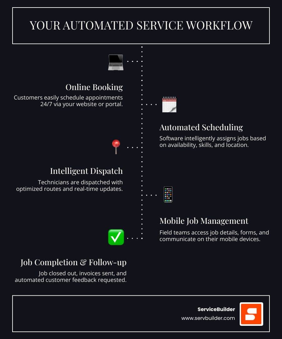 Service company scheduling software is a digital tool for field service businesses to manage appointments, dispatch technicians, and coordinate operations from one central hub. It replaces manual methods like phone calls and spreadsheets by automating the entire workflow from booking to job completion.